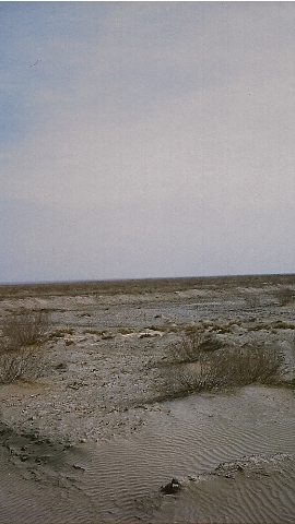 テレビの仕事で敦煌からシルクロードを西に向かう途中。ロケバスに揺られながら延々と変わらない真っ平らな風景を見ているうち、ここを撮影しておこうということになった。三十分後にまた来てもらうようにバスを行かせると、道から外れ、ゴビ灘と呼ばれる土漠に足を踏みだす。乾いた表面が足下でぱりんぱりんと音を立てる。カメラクルーの姿が見えなくなるまでしばらく歩いて、辺りをぐるりと一周見回す。見渡すかぎりの真っ平らな荒れ地。遠くが霞んでいるのか、山はおろか、本当になにも見当たらない。以前カンボジアのある小高い丘に登った時、ぐるり三六〇度が地平線という景色が開けて感動したことはあるけれど、その時は眼下にぽつりぽつりとヤシの木や民家が見えていた。それが今度は、シルクロードという一本の道以外、本当に人工物が何も見えない風景なのだ。平らなところに立っているため、いまやその道すらほとんど見えない。一匹の鳥すら飛んでいない。自分以外まったく対象物がない空間。
